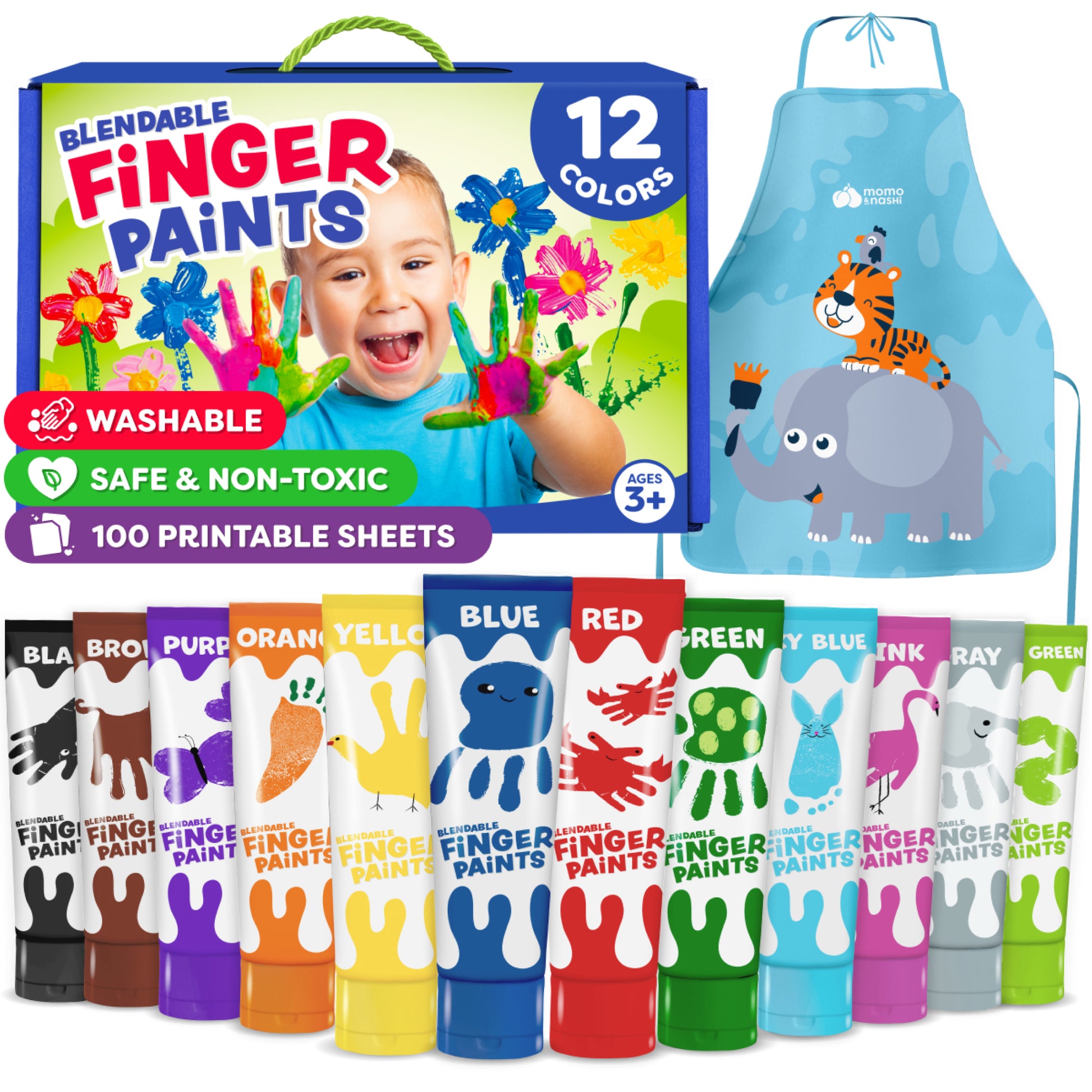 Washable Finger Paints for Kids - 12 Colors